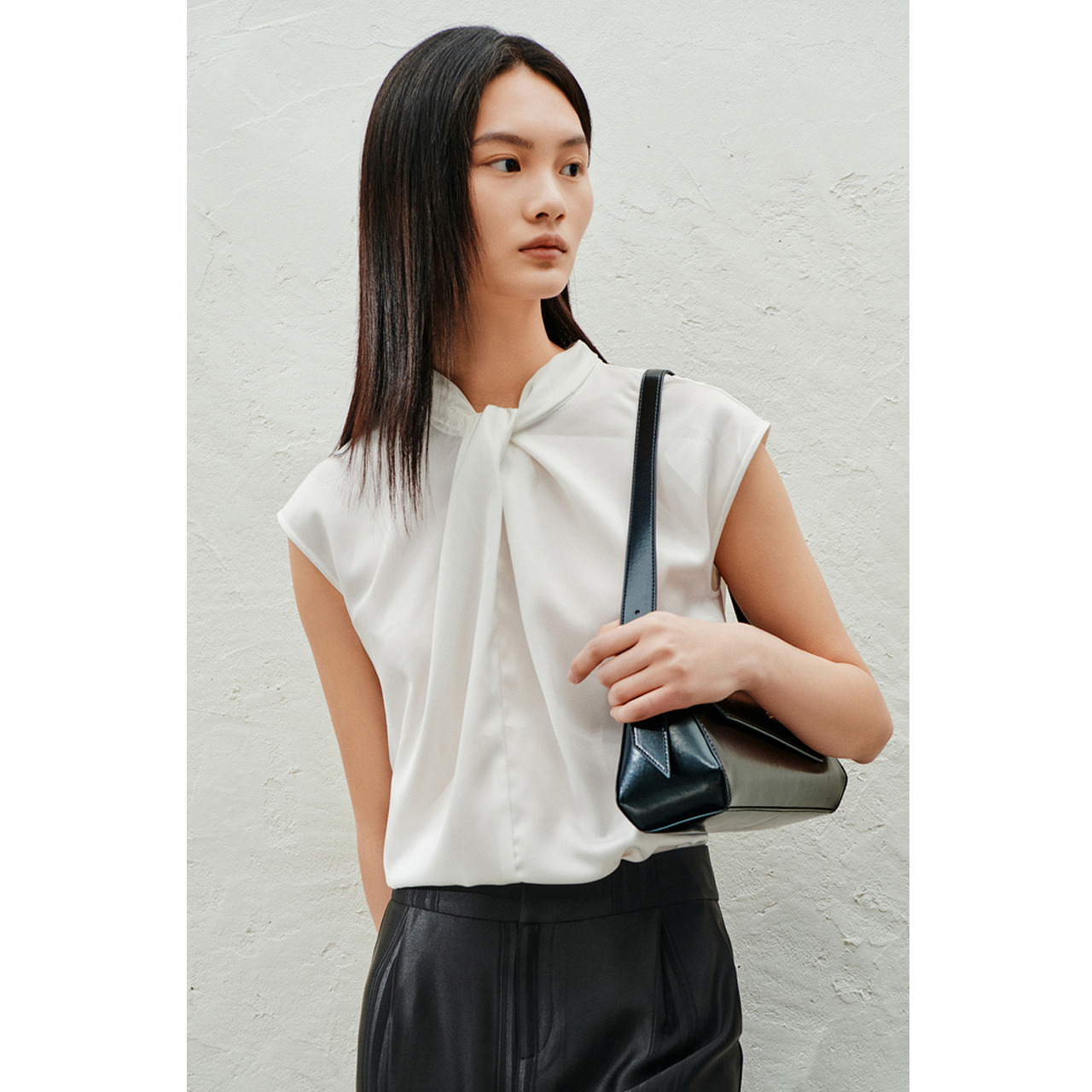 INSUN恩裳2023夏季领口立体打褶盖袖小上衣优雅小众上衣9C63270220