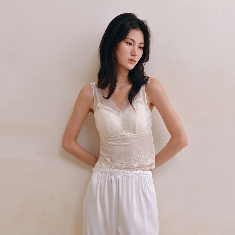 清爽通透网纱蕾丝带杯背心8J53202040