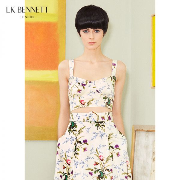 LK BENNETT | 2023夏 | TW ELOIS度假风印花超短吊带外穿纯棉法式露胃
