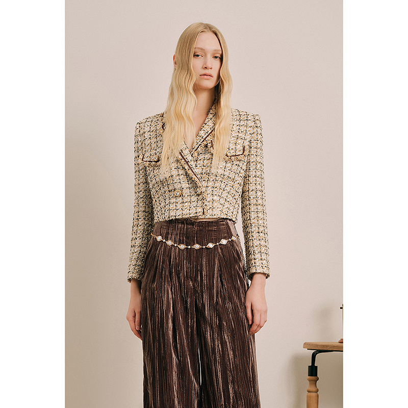 OBBLIGATO奥丽嘉朵2024春季金标香槟金色花纱箱型短外套1C34110010