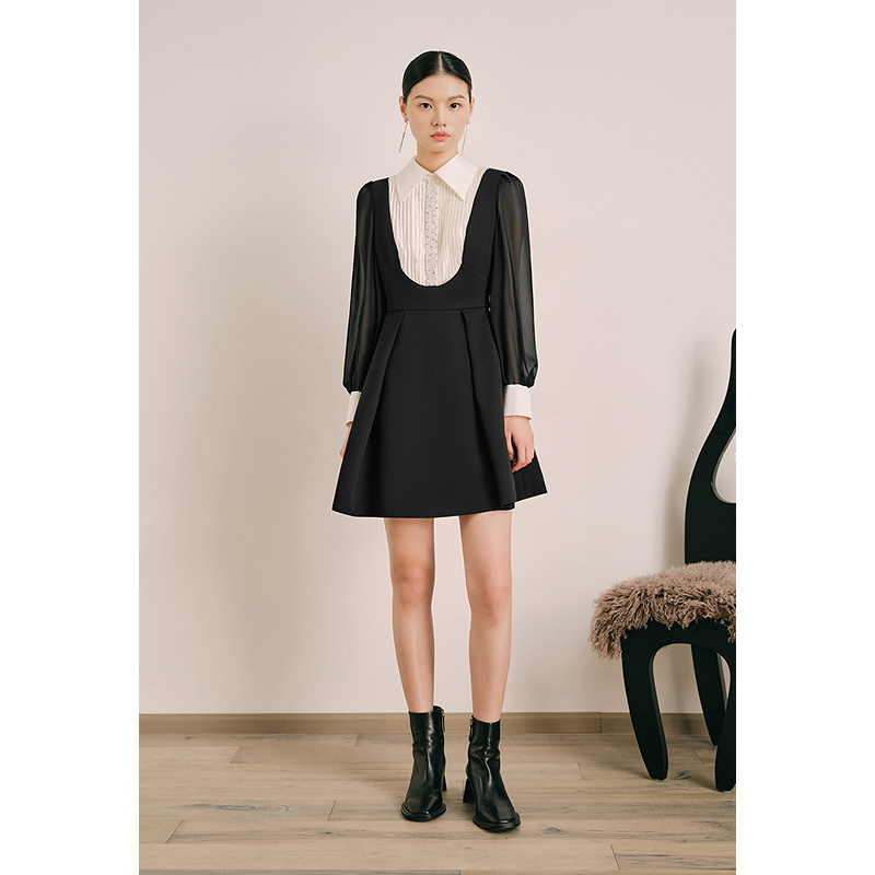 OBBLIGATO奥丽嘉朵2024春季黑色珠钻点缀时尚百搭连衣裙1C64105250