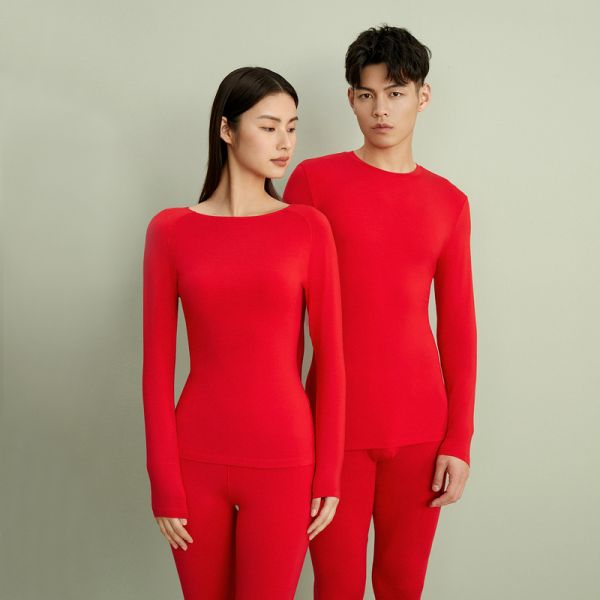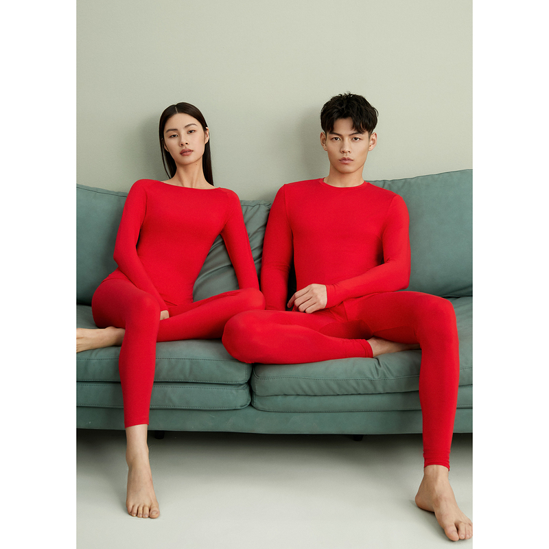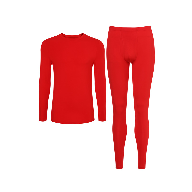 莫代尔蓄热中国红男士保暖套装