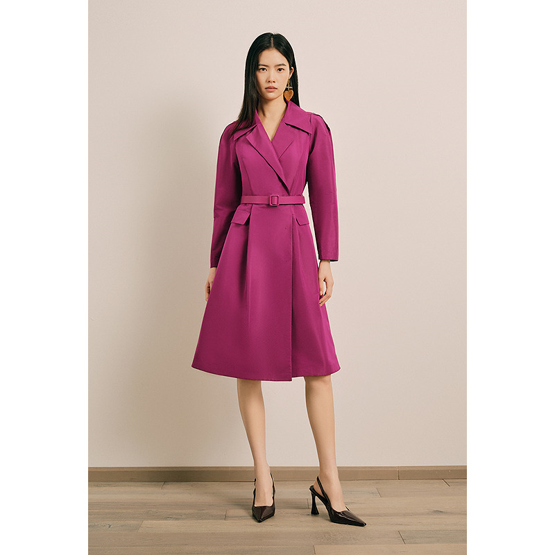 OBBLIGATO奥丽嘉朵2025春季金标樱桃红西装翻领收腰A摆廓形风衣1C35107040