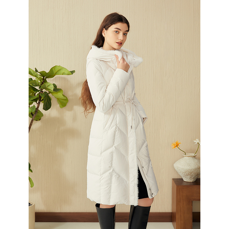 【厚实高克重】YINER音儿专选2025春季新款保暖水貂毛条长羽绒服8C65108126
