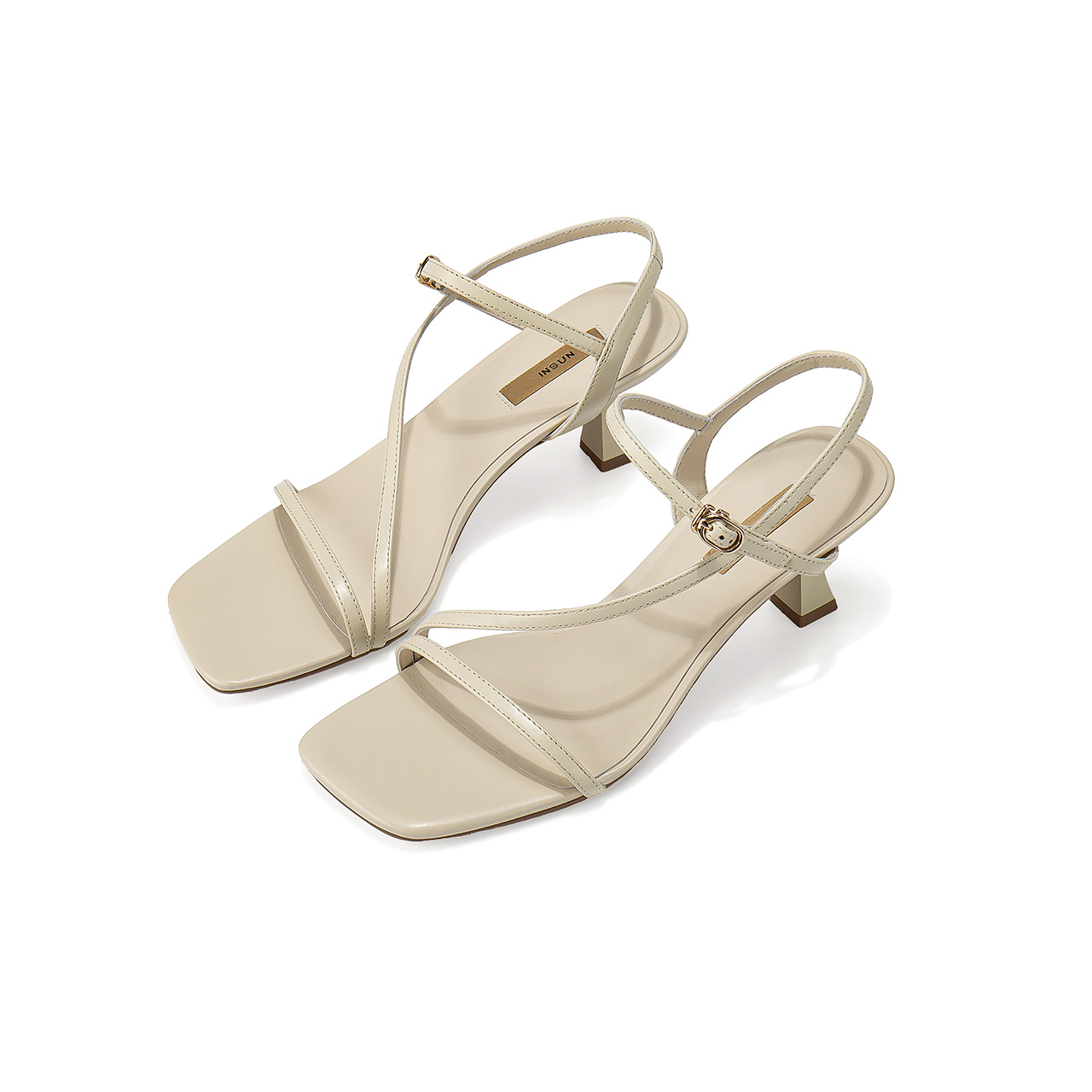 INSUN恩裳2025夏季时尚一字带真皮高跟凉鞋9C35292030