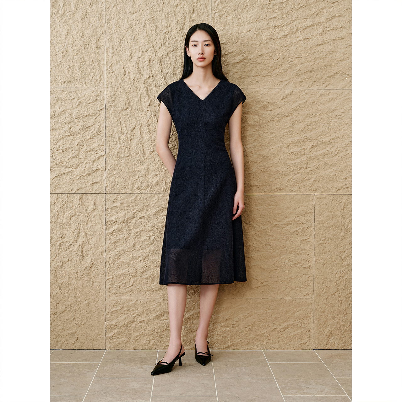 INSUN恩裳专选2025新品时尚V领收腰a字连衣裙9C65105290