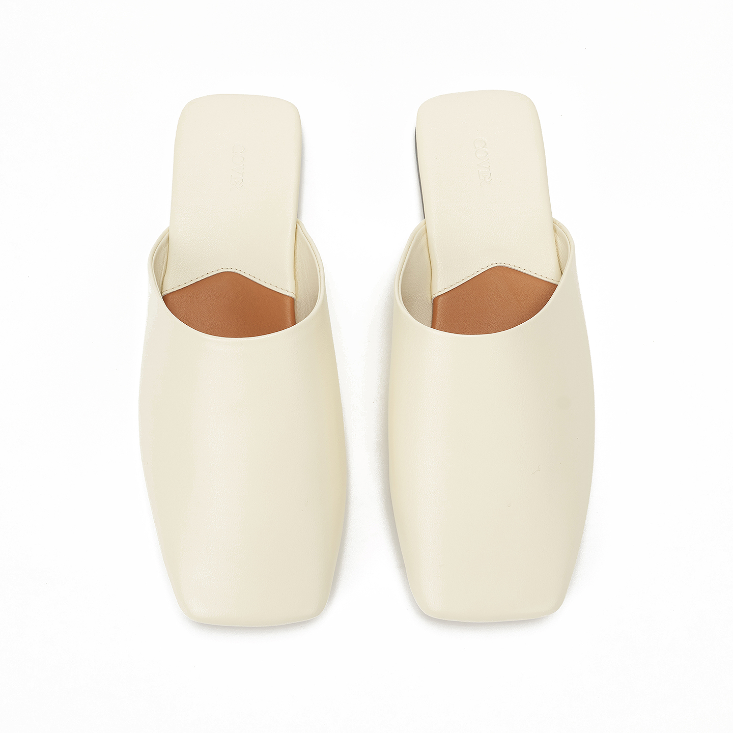 COVERINS2025夏季新品米白色牛皮平底包头拖鞋CC35292010