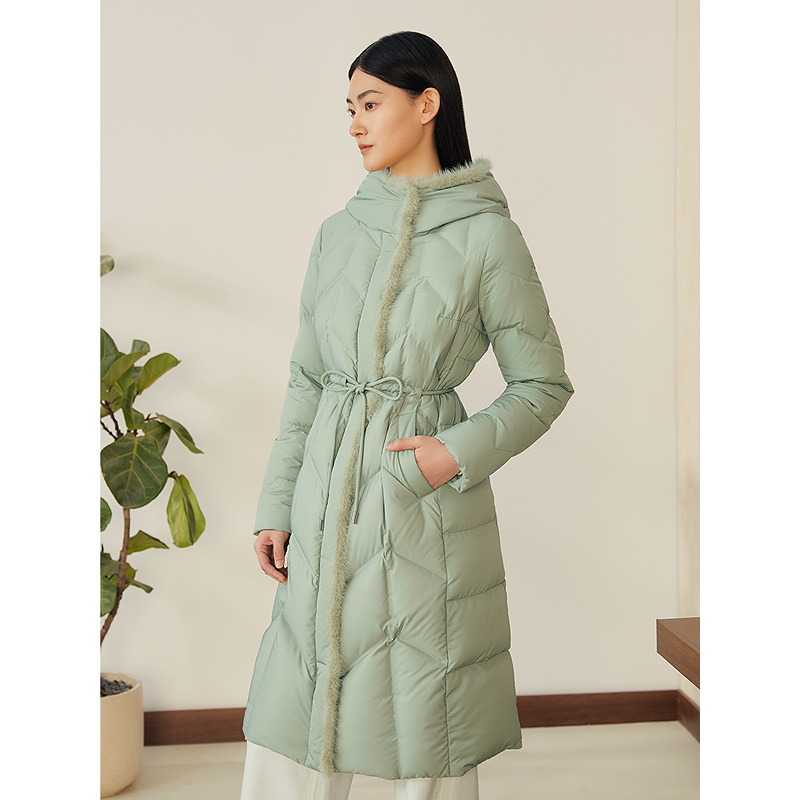 【厚实高克重】YINER音儿专选2025春季新款保暖水貂毛条长羽绒服8C65108126