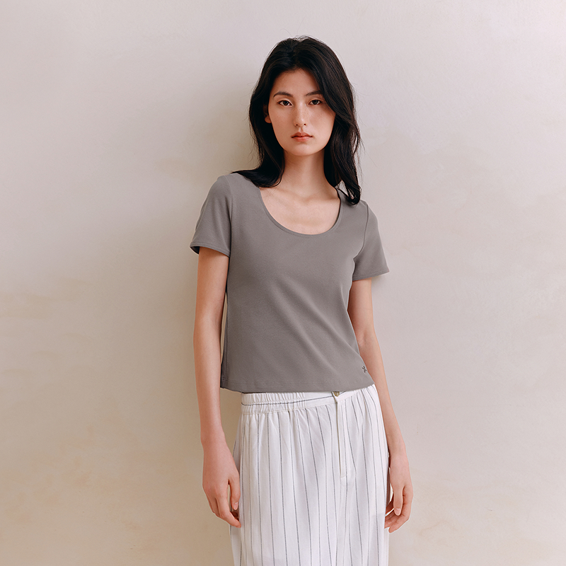 女士U领T恤