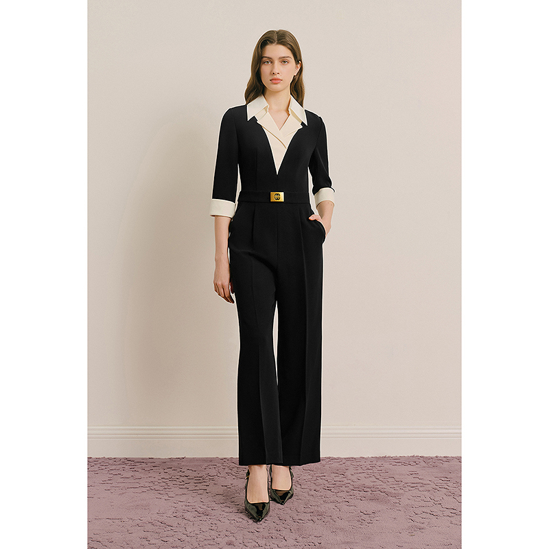 OBBLIGATO奥丽嘉朵2025夏季新品黑色经典撞色拼接连体裤1C65202200