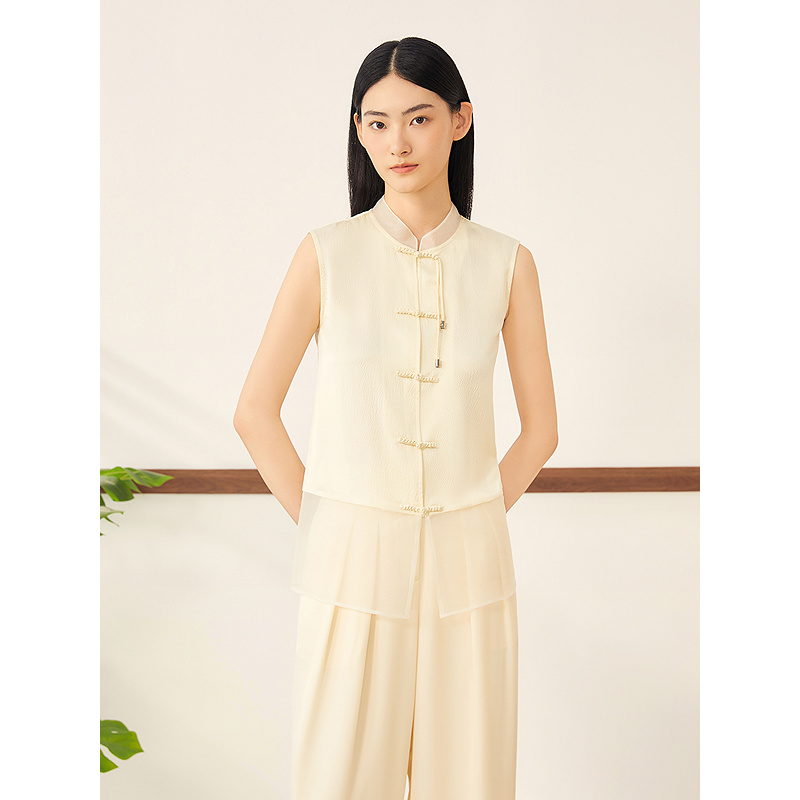 【真丝系列】YINER音儿2025夏季真丝珍珠缎立领气质上衣8C35201098
