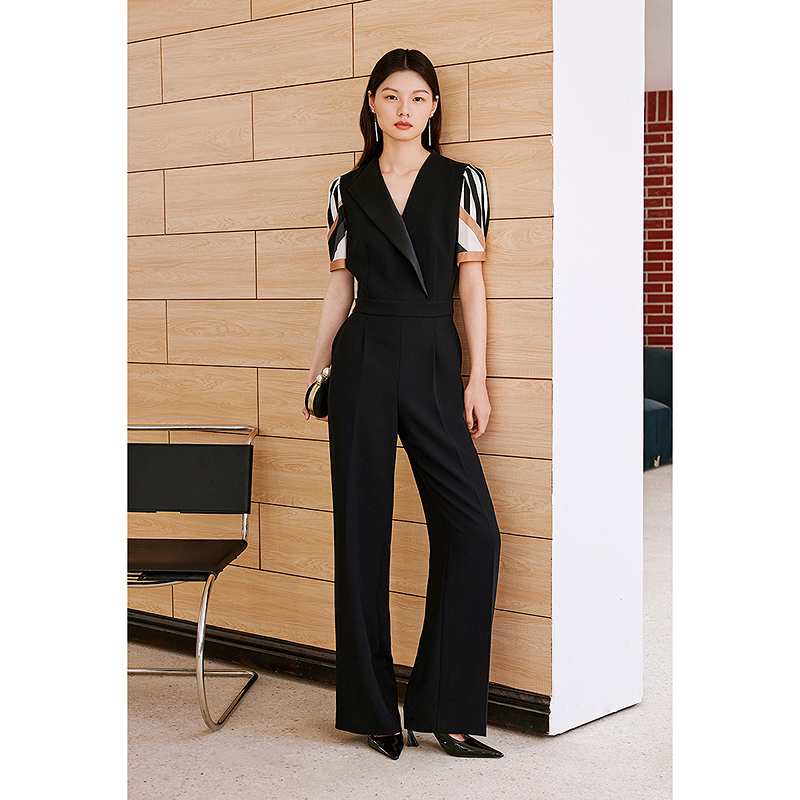 OBBLIGATO奥丽嘉朵2025夏季V领条纹拼接显瘦连体服1C35202120