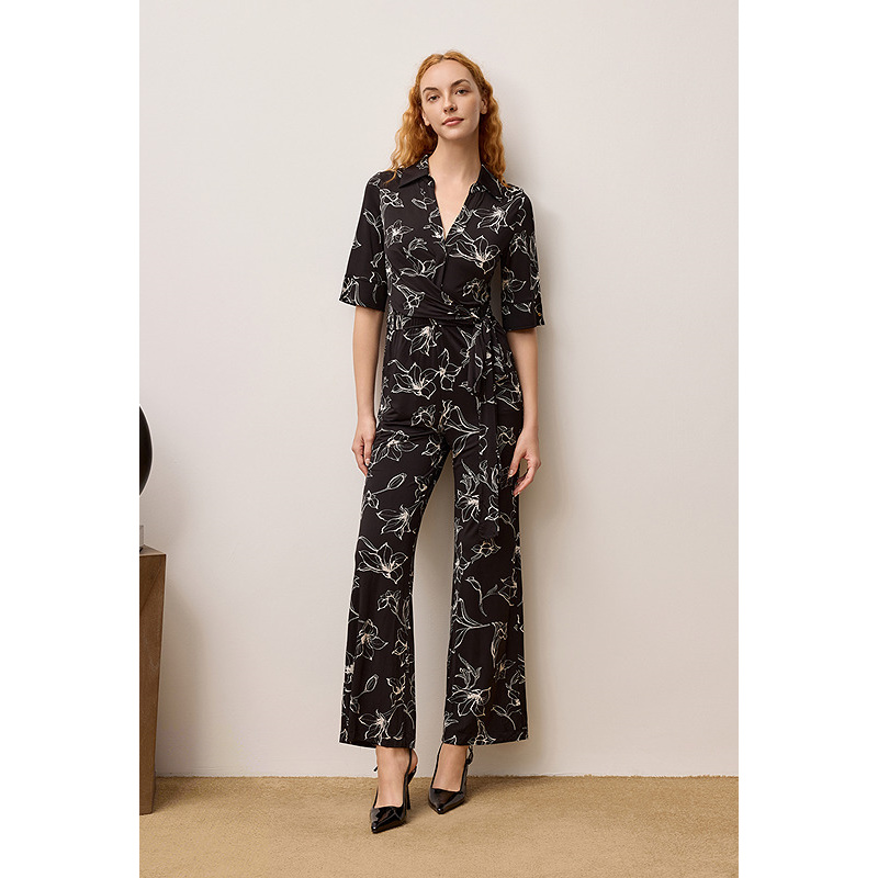 OBBLIGATO奥丽嘉朵2025夏季翻领设计感绑带收腰印花连体裤1C35202140