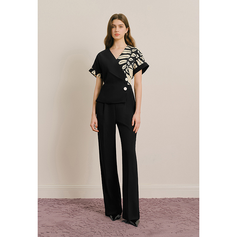 OBBLIGATO奥丽嘉朵专选2025夏季新品V领落肩袖撞色假两件连体裤1C65302060