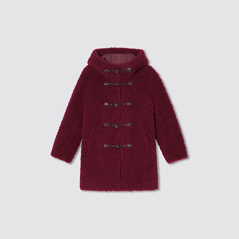 SALT.P可颜 2025冬季新款100%绵羊毛一手长连帽外套AC35510100