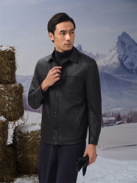HEARDRO 男士翻领绵羊头层真皮夹克 8335322020