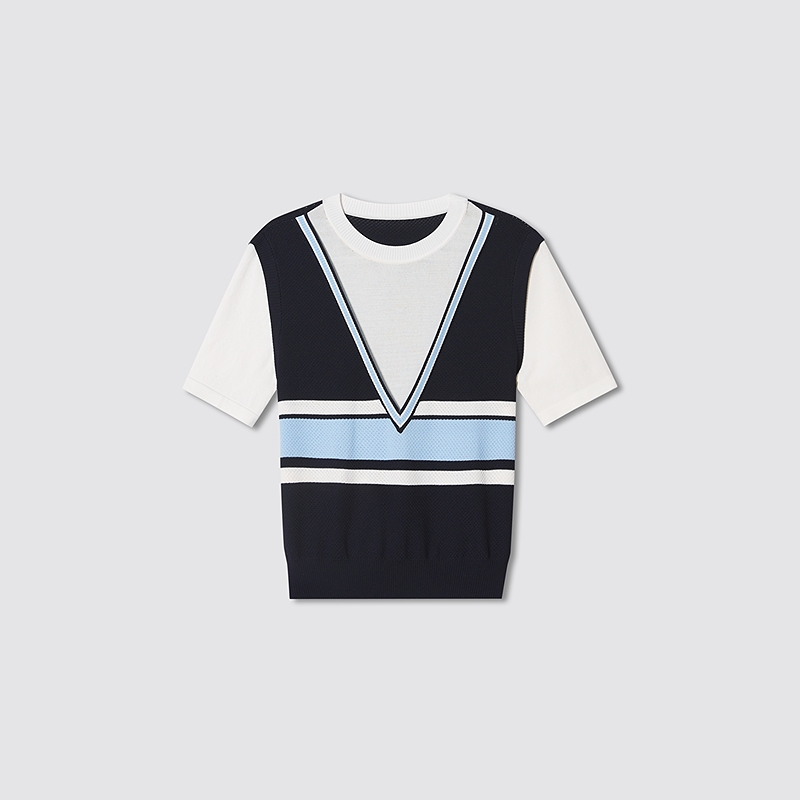 SALT.P可颜 2025秋季新款经典学院风撞色拼接针织衫AC35360230