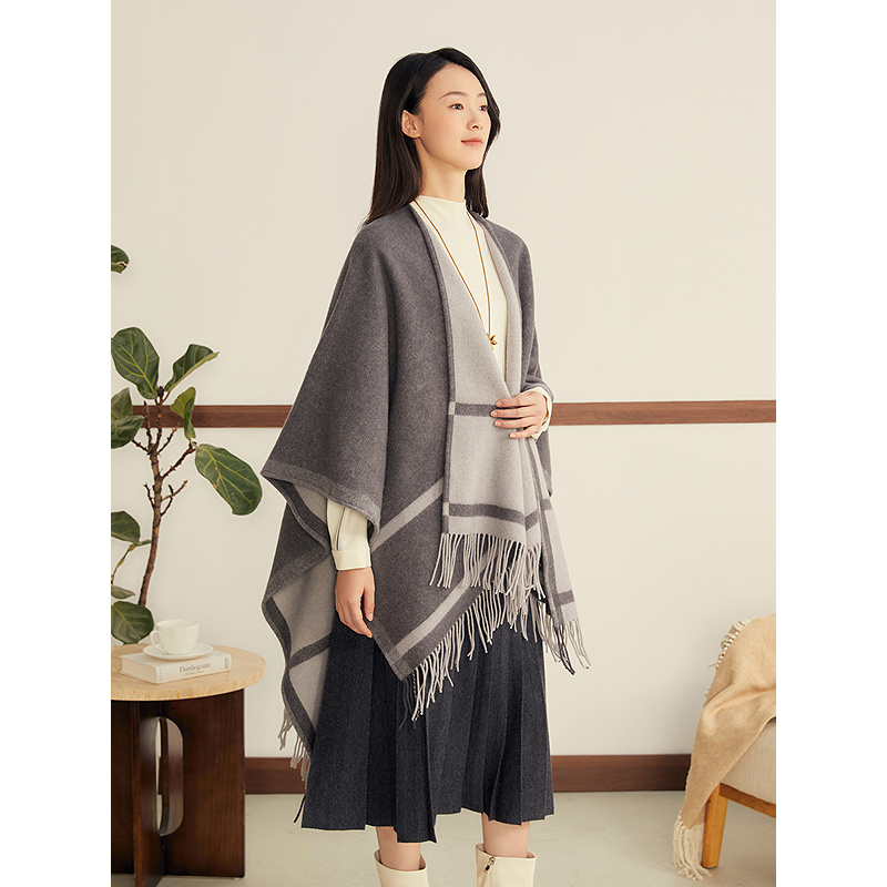 YINER音儿2025冬季新款法式松弛感百搭撞色流苏柔软纯羊毛围巾