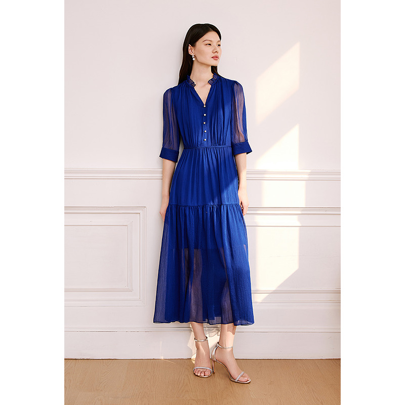 OBBLIGATO奥丽嘉朵专选2025秋季新品肌理感金属扣装饰连衣裙1C65305600