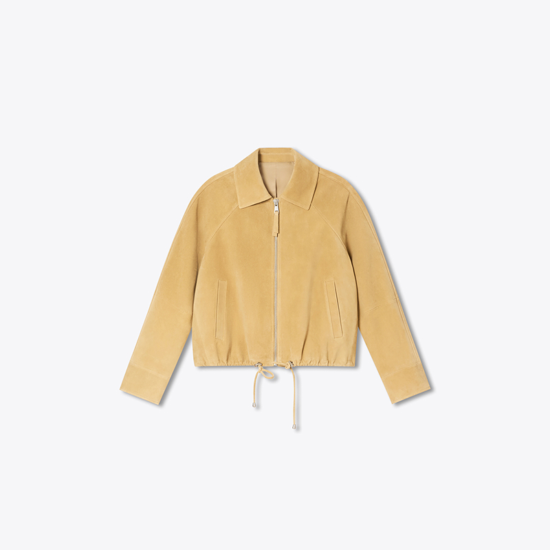 ToyzY2025秋季新款气质巴恩风衬衫领羊反绒皮短款外套ZC35309110