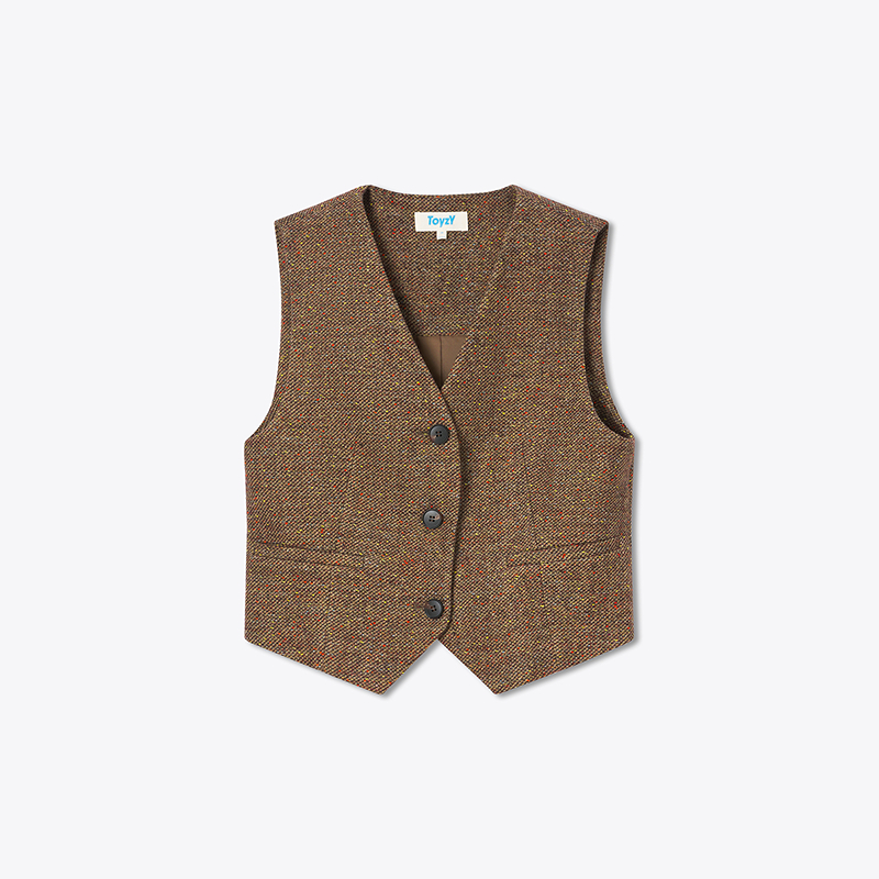 ToyzY2025冬季新款复古彩点斜纹挺括有型羊毛花呢马甲ZC35501050