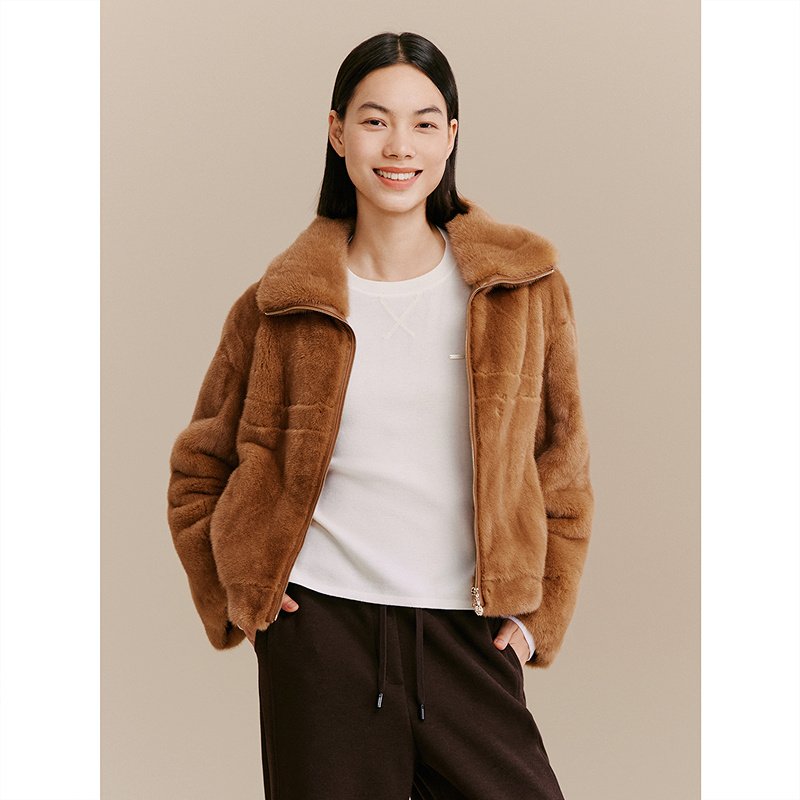XII BASKET十二篮专选25冬新款奢级摩登高级感休闲水貂毛短外套7C65509030