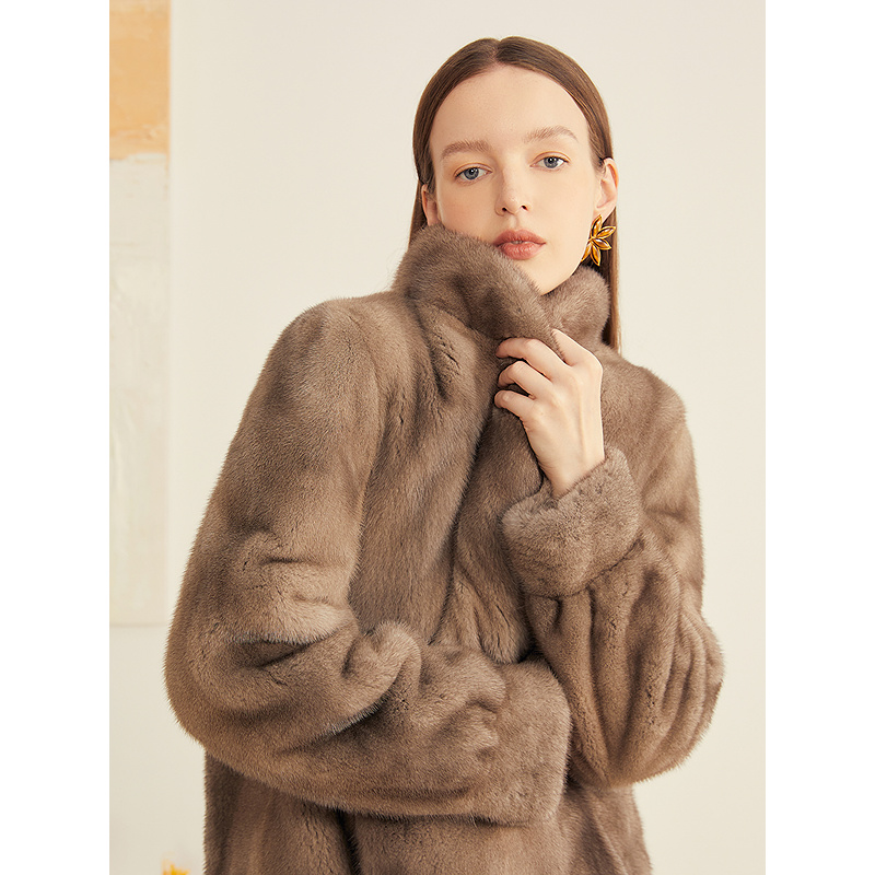YINER音儿专选2025秋季新款法式银兰色母貂整貂立领短款皮草外套