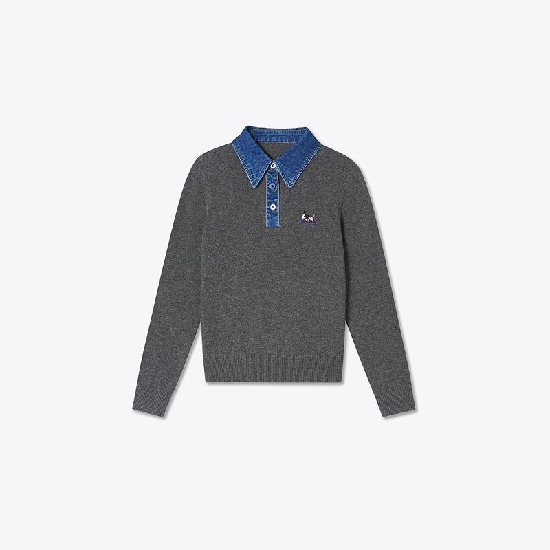ToyzY2025冬季新款智性灰色牛仔拼接绵羊毛混纺针织衫ZC35506330