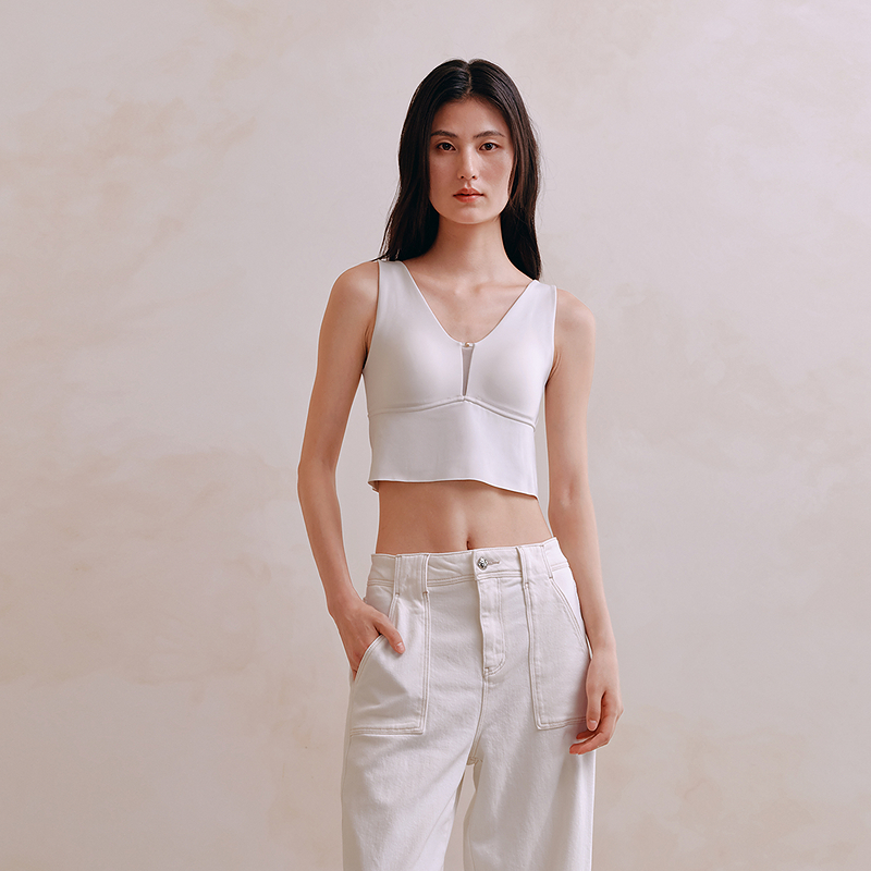 双面磨毛V领美背带杯背心8J35302010