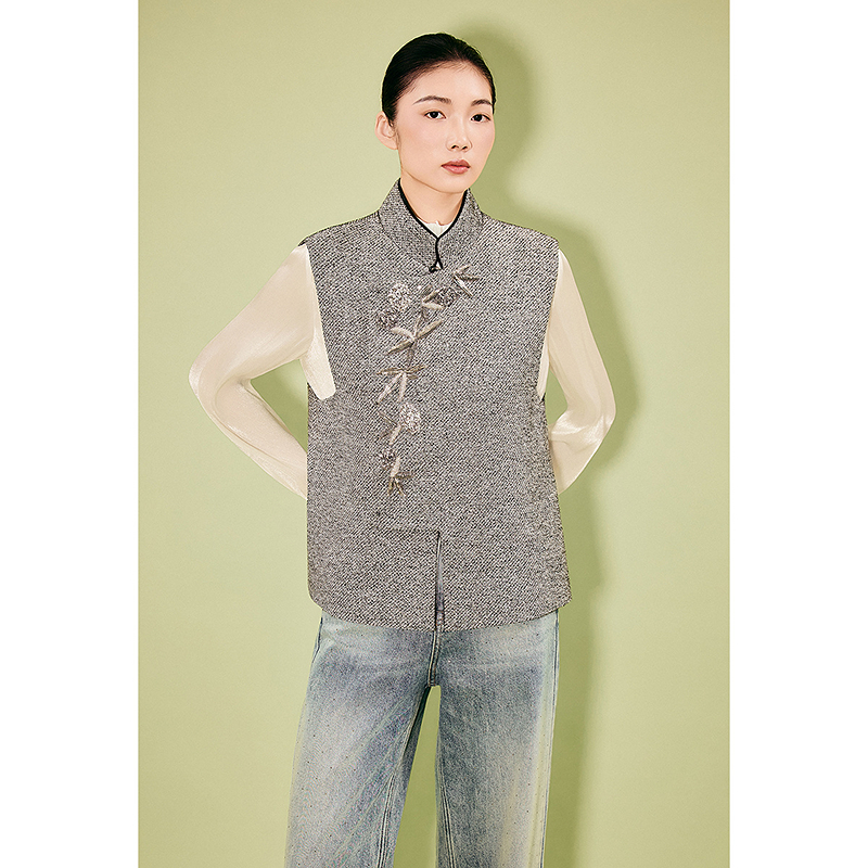 OBBLIGATO奥丽嘉朵专选2025冬季手工钉珠立体缉边新中式马甲1C35501020