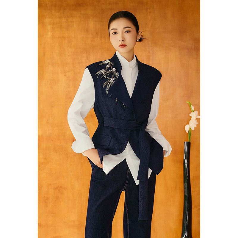 OBBLIGATO奥丽嘉朵2025秋冬竹韵珠片绣花新中式提花马甲外套1C35501030