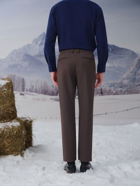 高支羊毛混纺弹力腰休闲裤
