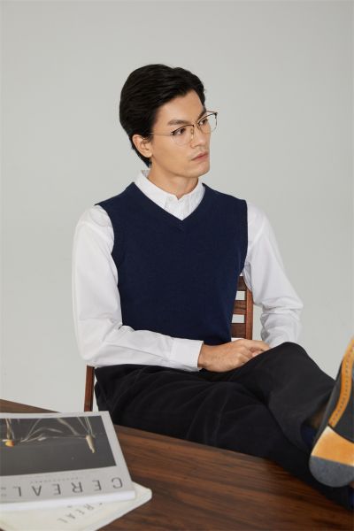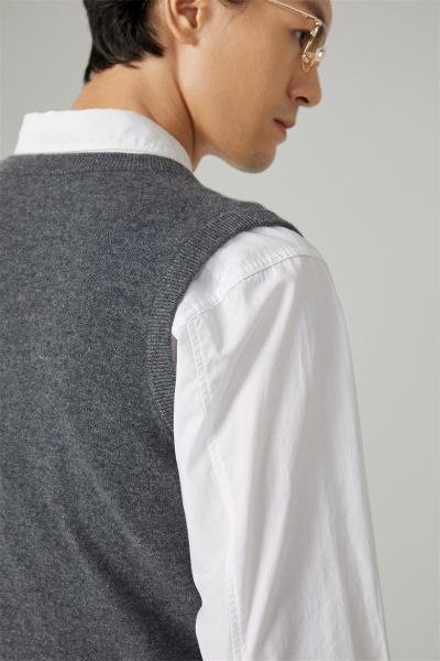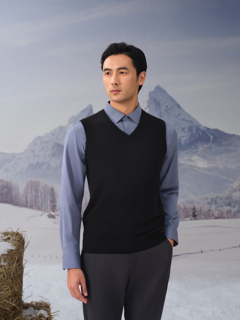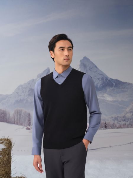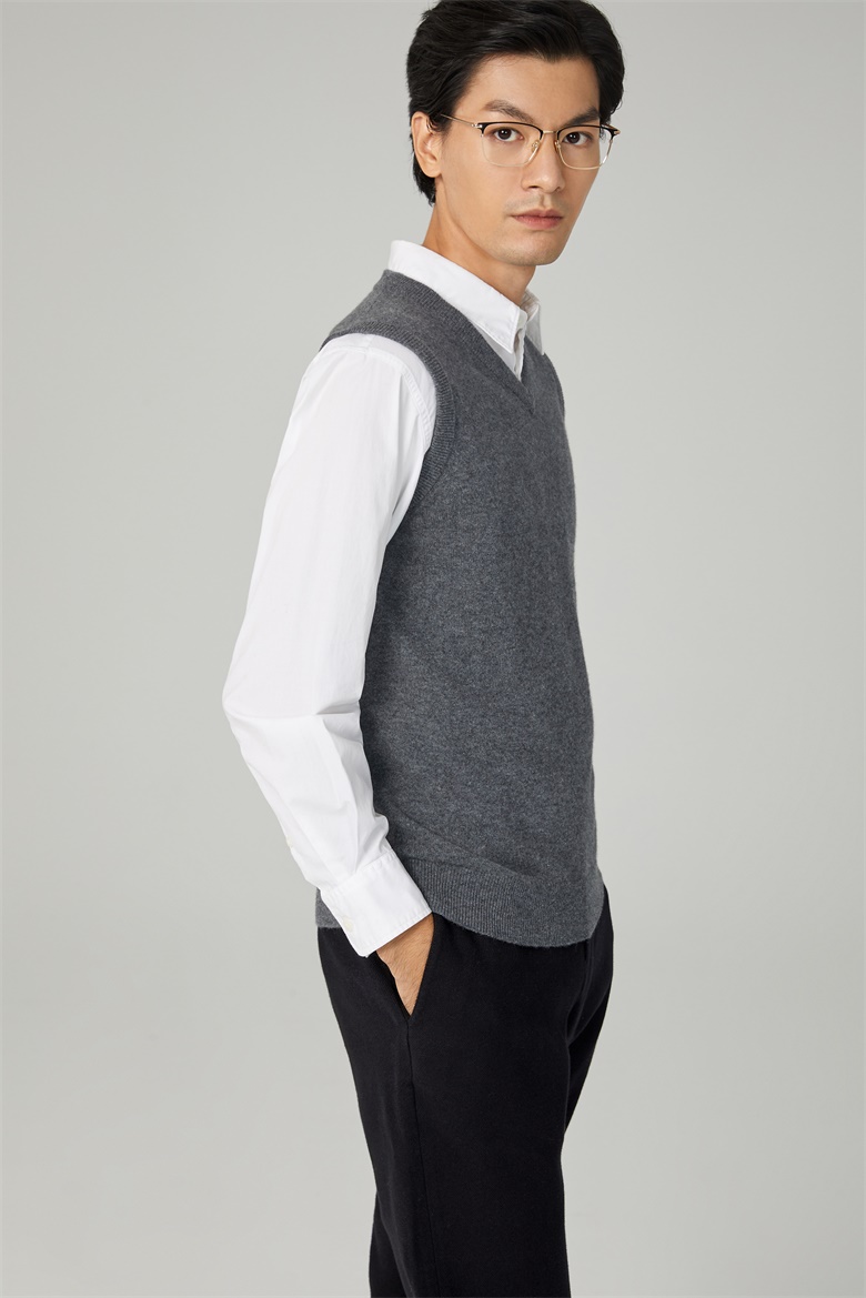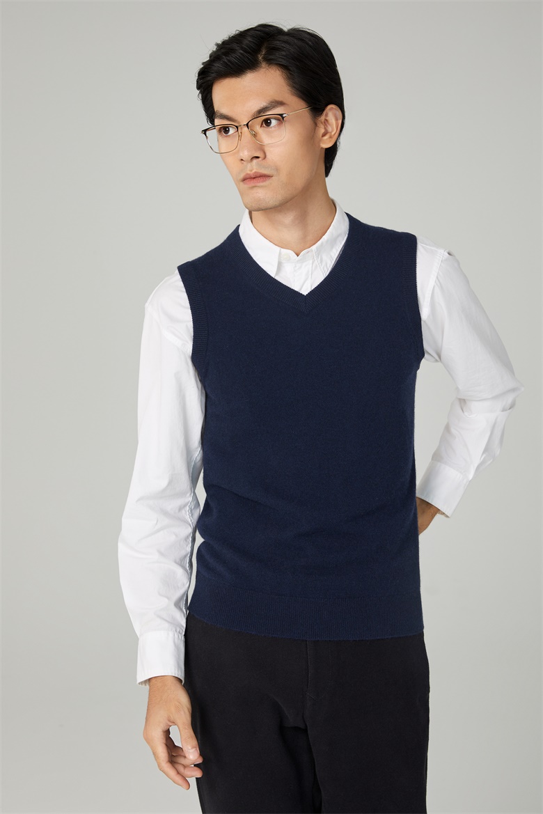 男士V领可机洗精纺羊毛背心