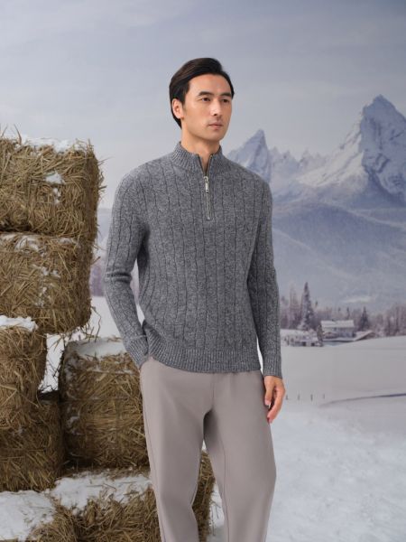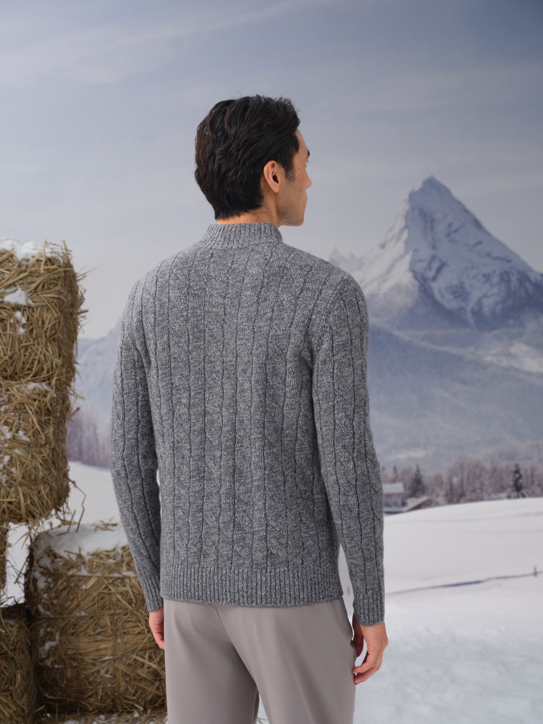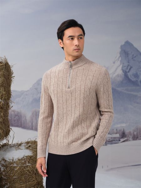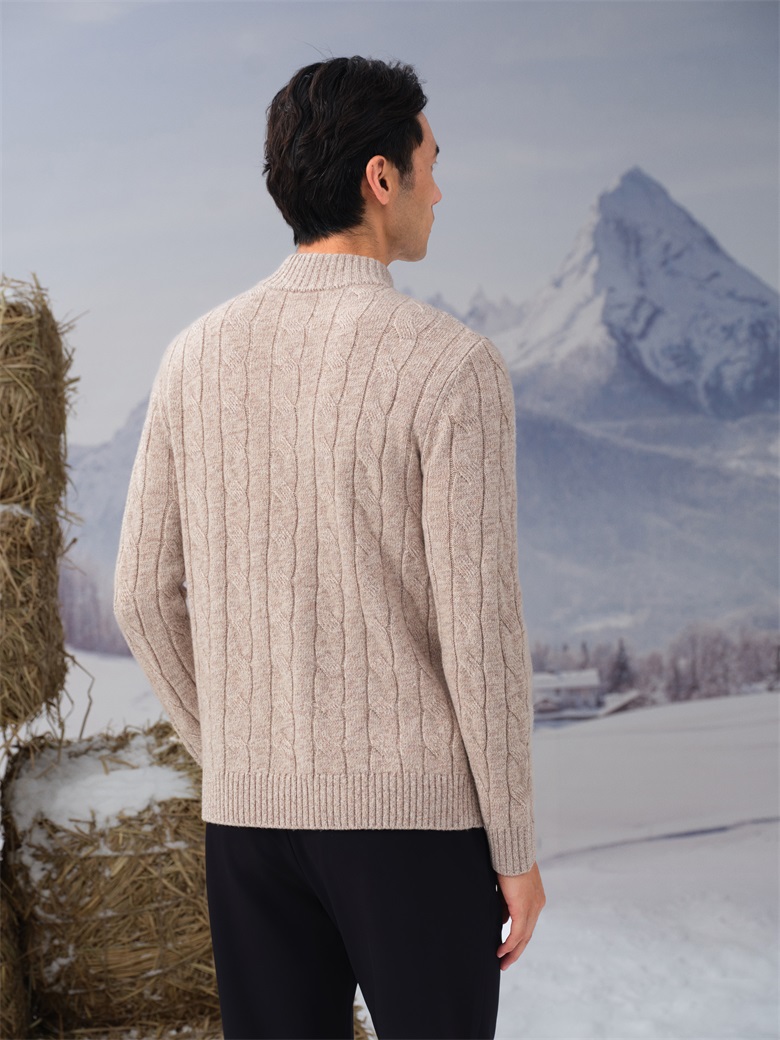 HEARDRO 男士半高拉链双股加厚绞花羊毛衫 8335322210