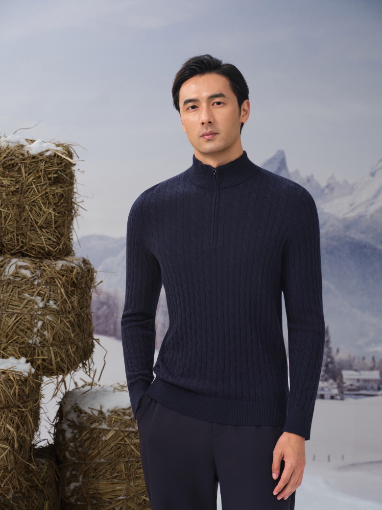 HEARDRO 男士羊绒混纺经典绞花立领款 8335322280