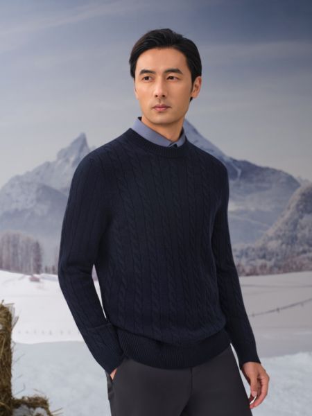 HEARDRO 男士羊绒混纺经典绞花圆领毛衫 8335322290