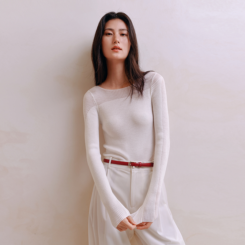 100%美利奴不规则设计羊毛打底衫8J35527100