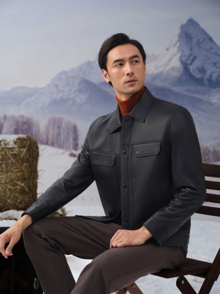HEARDRO 男士经典工装翻领二代绵羊皮夹克 8335322080