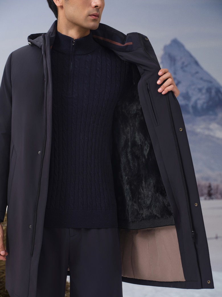 HEARDRO 男士可脱卸长款水貂内胆皮草派克服 8335522120