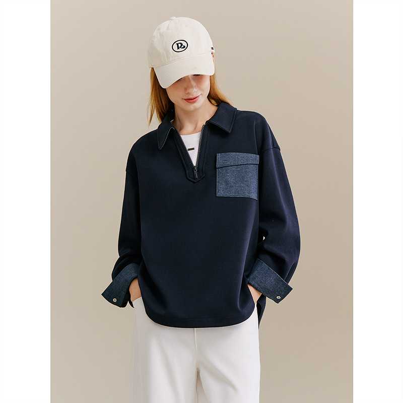 XII BASKET十二篮专选25冬新款半拉链藏蓝色撞料拼接复古休闲上衣7C65570080