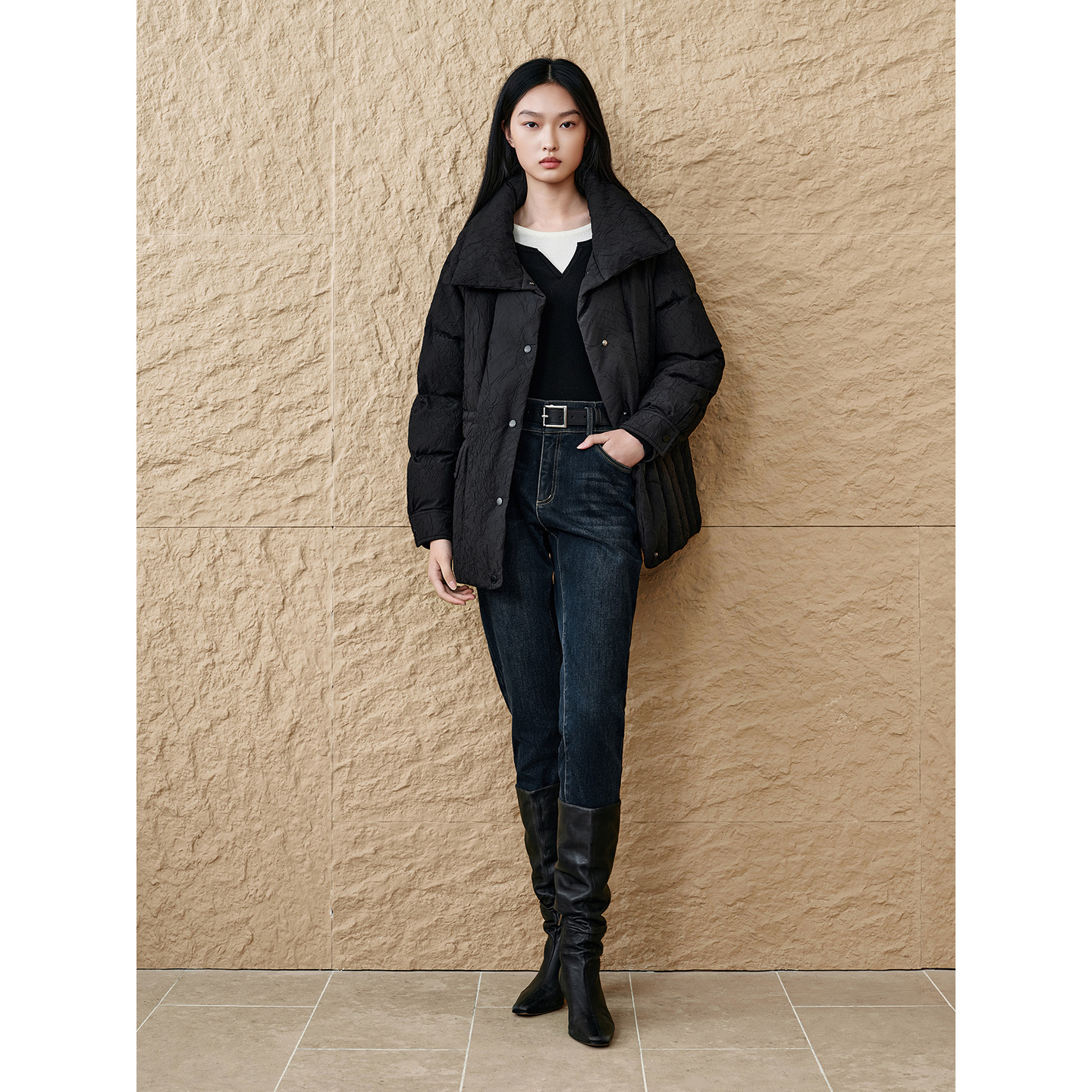 INSUN恩裳专选2025冬季简约立领一手长鹅绒羽绒服9C65508630