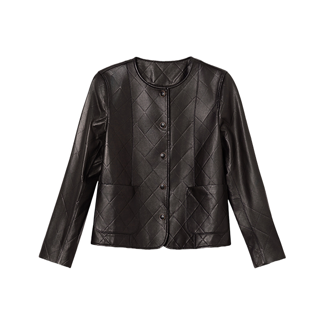 Lumsonare琅颂2025冬季复古菱格纹短款羊皮革外套 9CY5509040