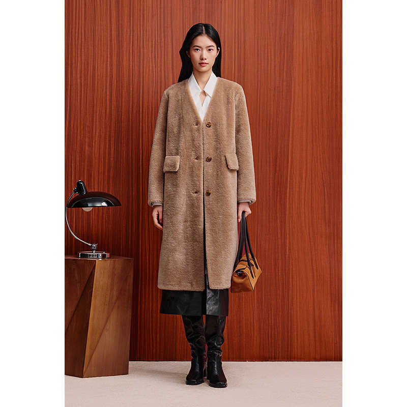 OBBLIGATO奥丽嘉朵专选2025冬季新款v领绵羊毛保暖中长款大衣外套1C65580190