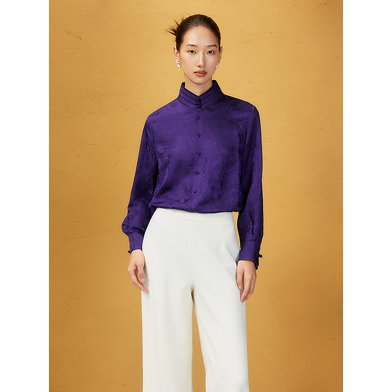 Song of Song歌中歌2025冬季新品紫云吟·新中式桑波缎提花衬衫5C35530040