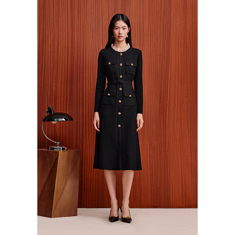 OBBLIGATO奥丽嘉朵专选2025冬季新款醋酸羊毛荷叶领小香风连衣裙1C65505170