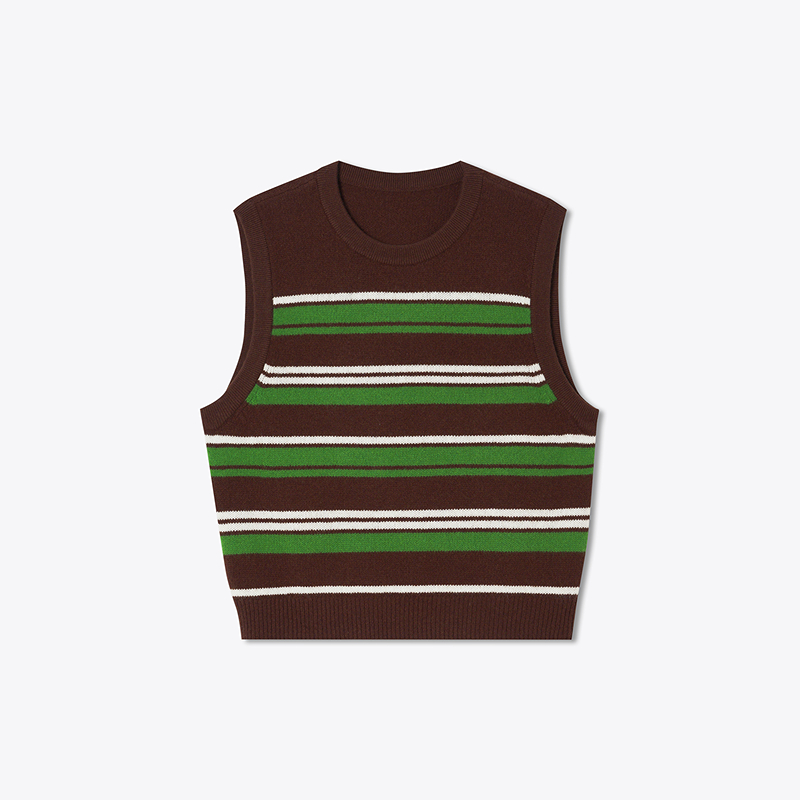 ToyzY2025冬季复古撞色条纹100%绵羊毛针织背心ZC35504010