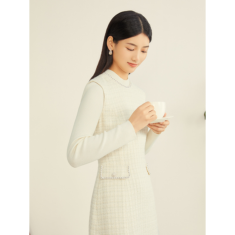 YINER音儿专选2025秋季新款法式小香风羊毛混纺闪丝花纱X型连衣裙8C65305256