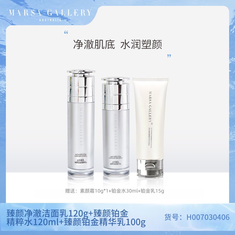 玛莎格芮臻颜护肤套装(洁面乳120g铂金精粹水120ml铂金精华乳100g)H007030406