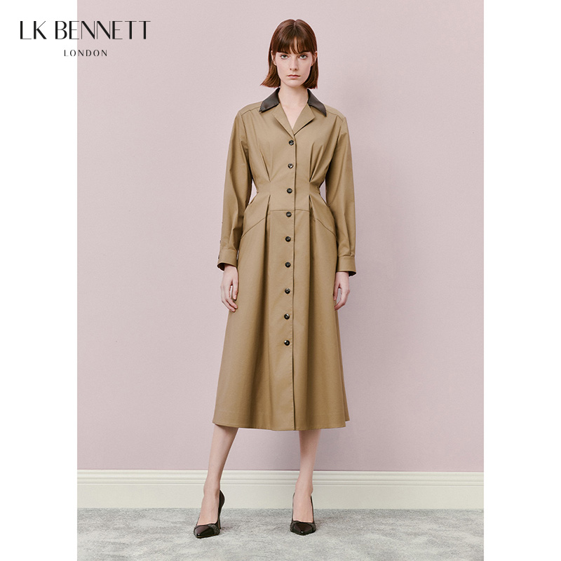 LK BENNETT|2025年新款拼接翻领单排扣工装外套长款风衣LKBTIA63202