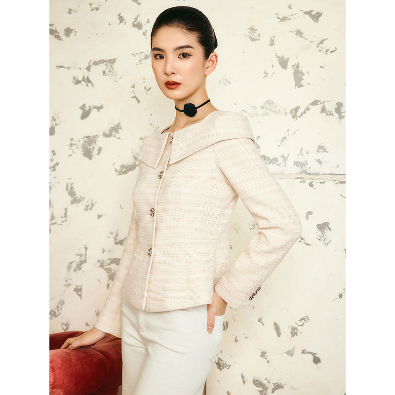 【1996系列】YINER音儿2025冬季新款法式小香风一字肩收腰短西装